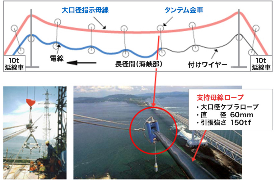 海峡横断等の長径間・特殊電線の新設架線・張替・撤去の高張力架線工事
