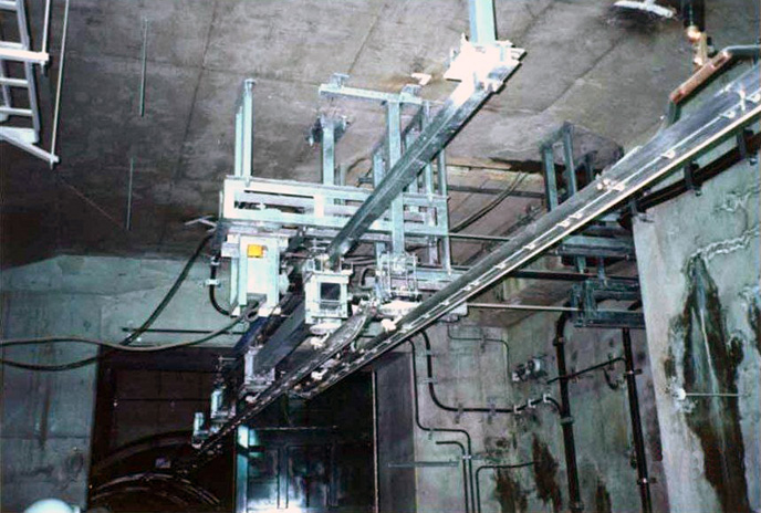 住友電設は、この電車線を移動するシステムを設計から製作・据付調整まで行っています。