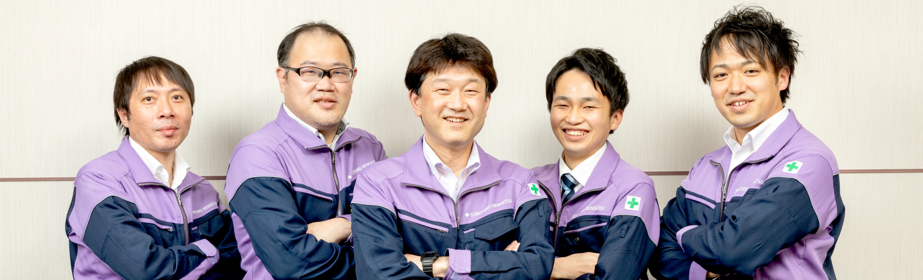 この5G通信網の構築において、基地局の整備に大きな役割を果たしているのが住友電設通信システム事業部だ。部員数約40名・業務委託作業員約200名という限られた人員で、各携帯キャリアの主導のもと、だけで約2,800以上の基地局を施工(※一部4Gも含む)。