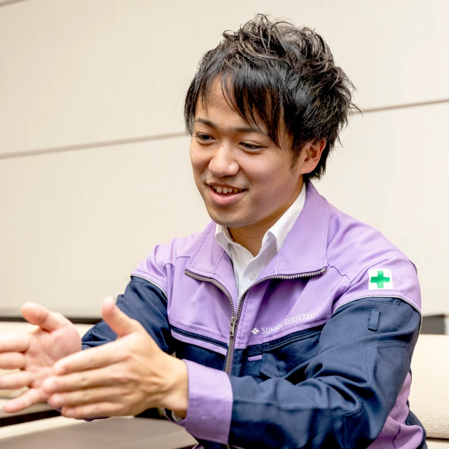 担当件数の多い通信システム事業部では、他部署のように「すべての現場につきっきりで立ち会う」というのは難しい。通信システム事業部のメンバーは、基本的に本社オフィスにいながら遠隔で施工管理を行うことになる。「電話やビジネスチャットツールでのコミュニケーションを通して、現場への指示・安全指導・施工確認を行います。安全管理を徹底していくためにも、ここでのコミュニケーションは重要。私たちの想いをしっかりと伝えるよう心がけています」とT.T.は言う。