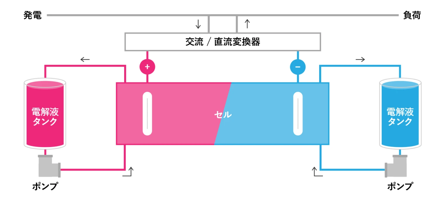 レドックスフロー電池の構成図