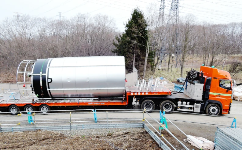 実際に着工してからも重量物搬入据付工事はスムーズに進んでいく。途中、輸送フェリーが火災に見舞われ、タンクが予定通り届かないというトラブルもあった。しかし台風などの気象条件による遅延を見込み、常にストックが用意された工程計画を組んでいたため、事なきを得る。細心かつ万全の計画によって、プロジェクトは順調に進んでいった。