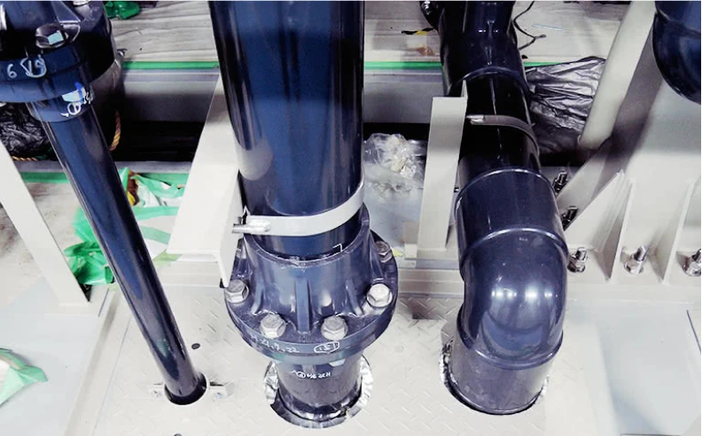 レドックスフロー電池の電解液である硫酸バナジウムは、水よりも粒子が細かい。ゴムパッキンに髪の毛一本挟まった程度の隙間でも、硫酸バナジウムでは漏液につながる。今回の配管工事で最大の課題となったのは、漏液しない加工管の製作だった。レドックスフロー電池は、タンク内の硫酸バナジウムをポンプで電池盤へとくみ上げて電気を発生させる仕組みとなっているが、タンクと電池盤をつなぐ配管から硫酸バナジウムが漏れてしまえば当然感電する。そのため、硫酸バナジウムも漏らさない厳格な品質検査基準および検査項目を設けることとなった。たとえば、配管の加工切断面が垂直になっているかどうか。その誤差の許容範囲を1~1.5mmとし、配管接続時にわずかな隙間もできないように配慮したり、徹底した気密試験を行ったりするなど、配管工事における施工管理を行った。