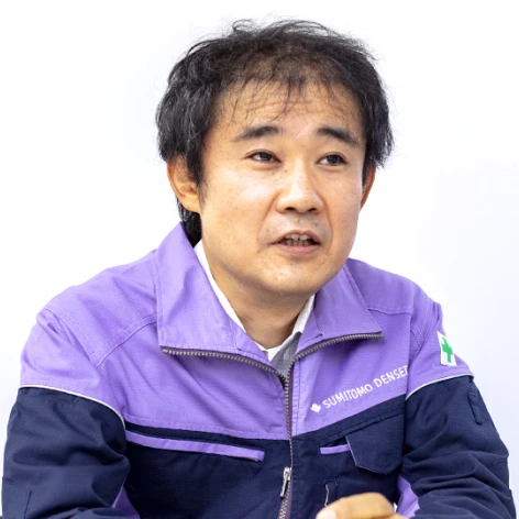 住友電設のアドバンテージは、自営線(地中)工事から、集電線(地中、ケーブル)、変電所関連工事、通信工事、風車内電気工事まで、多岐にわたる専門部署が互いに連携をとりながら対応できることにある。とはいえ、プロジェクト着手当時は風力発電関連工事そのものが少なく、ましてやこれだけの大規模プロジェクトは過去に例がない。プロジェクト統括リーダーのK.H.は、まずチームワークの形成を重視したという。「自営線管路が32kmにも及び、現場や風車が広範囲に点在する今回のプロジェクトでは、コミュニケーションがなかなかとれないという問題がありました。何かトラブルがあったとき、その内容を即座に各作業所へ展開するにも連絡手段が電話しかありません。それに、電話だけではどうしても意思疎通が不十分だと感じていたんです」。