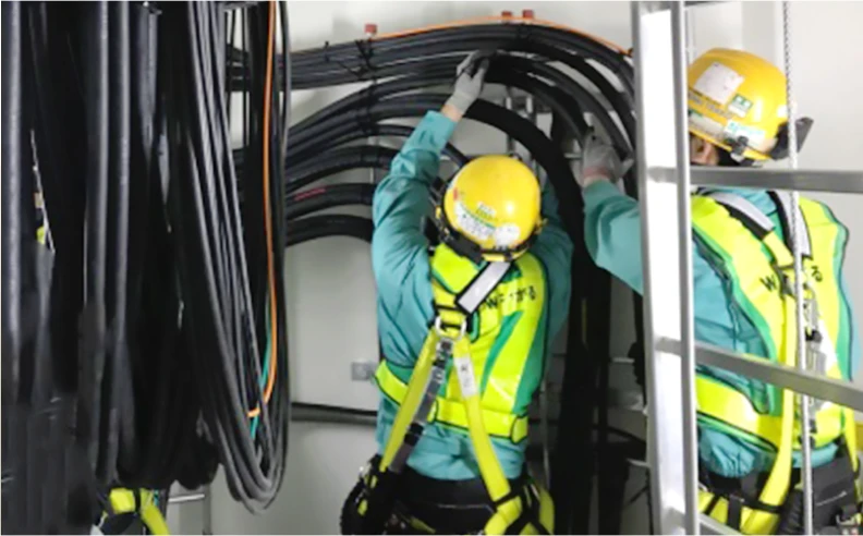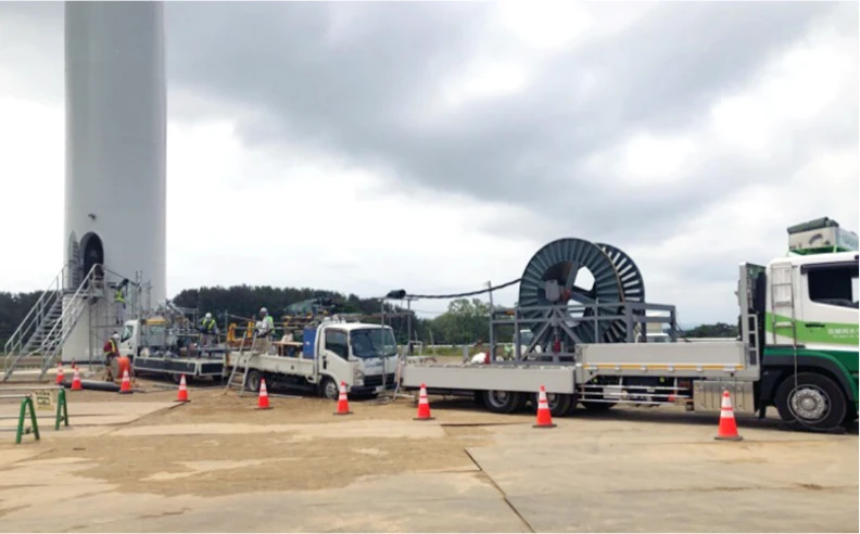 発電容量約121.6MW、風車38基、地中送電管路の総距離約32kmというこの一大プロジェクトにおいて、住友電設は自営線工事(地中)、集電線工事(地中、ケーブル)、変電所工事、通信工事、風車内電気工事を担うこととなった。